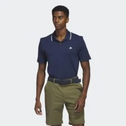 Keep cool while you shave strokes on the course. This adidas golf polo shirt is made of a soft and stretchy cotton-blend brrr° fabric. It has a triple chill effect that wicks moisture and dries quickly so you can focus on your swing, even when the sun is in full blaze.