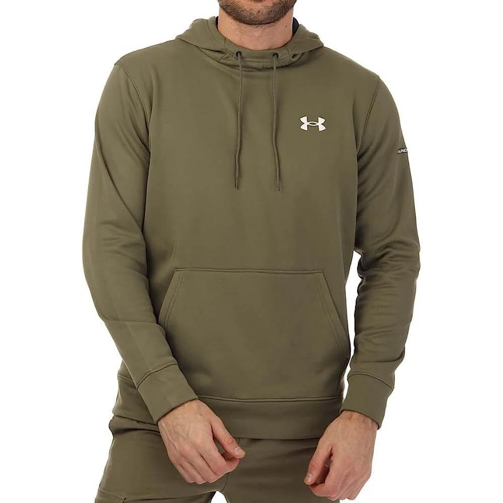 Made from an ultra-soft, lightweight cotton-blend fleece and a brushed interior for enhanced warmth. The attached hood is adjustable thanks to the dual drawcord system. Front kangaroo pocket for convenient storage. Ribbed cuffs and bottom hem. Under Armour logo to left chest.